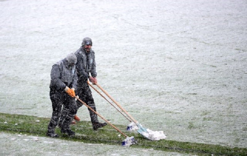Yoğun kar yağışı saha çizgilerini kapattı ve görüş mesafesini düşürdü. Maçın durdurulmasının ardından saha görevlileri çizgileri açmaya çalışırken, yağışın etkisi daha da arttı ve saha karla kaplandı. Hakem Tonusluoğlu 10 dakikalık sürede iki takım futbolcuları ve yetkililerle görüşüp maçı tatil etti. Karşılaşmanın yarın kaldığı yerden oynanacağı açıklandı.