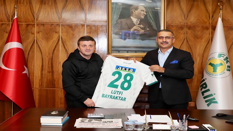 Nezaket ve moral ziyareti sonrası Giresunspor futbolcu ve teknik ekibinin imzaladığı forma Teknik Direktör Hakan Keleş tarafından Fiskobirlik Yönetim Kurulu Başkanı Lütfi Bayraktar’a hediye edildi.