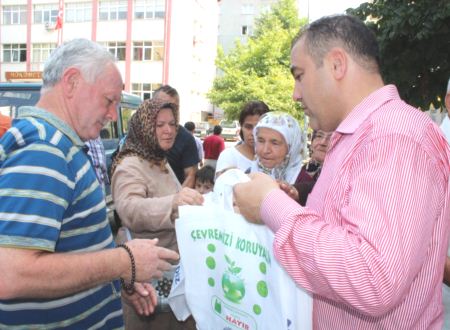Belediye olarak ilçede salı günleri kurulan halk pazarında özellikle nihai kullanıcı olan ev kadınlarına ulaştıklarını ve kampanya kapsamında 2 bin 500 bez çanta dağıtımında bulunduklarını söyleyen Tolga Erener, şunları kaydetti: