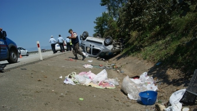 Trafik kazası Görele ilçesi Çavuşlu Beldesi Beyli mahallesi mevkiinde meydana geldi. Edinilen bilgiye göre, Giresun istikametinden Trabzon istikametine gitmekte olan Azem Baş (44) yönetimindeki 34 AP 9643 plakalı özel otomobil sürücünün direksiyon hakimiyetini kaybetmesi sonucu yoldan çıkarak takla attı.