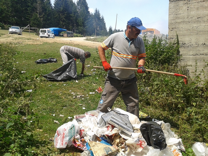 Giresun’un Dereli İlçe Belediyesi temizlik ekipleri, ilçeye bağlı olan yayla ve mesire alanlarında çöp toplama ekibi kurdu.