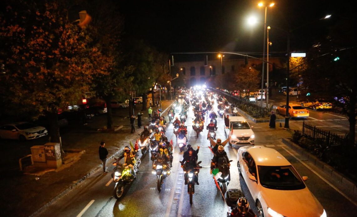 Son günlerde yaşanan gelişmeler üzerine Filistin halkına destek vermek ve İsrail’in Gazze’ye yaptığı saldırıları protesto etmek için İHH İnsani Yardım Vakfı’nın çağrısıyla, İstanbul’da dev bir konvoy organize edildi.Binlerce aracın katılım gösterdiği konvoyda, İHH Gönüllü Motorize Ekipleri de yer aldı.