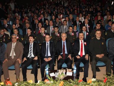 Kutlamalar çerçevesinde Vahit Sütlaş Sahnesinde düzenlenen törene, Vali Yardımcısı Bekir Ergök, İl Jandarma Komutanı Jan. Albay Selahattin Acara, Belediye Başkan Yardımcısı Orhan Kurt, Cumhuriyet Başsavcısı Gürmen İlhanoğlu, İl Emniyet Müdürü Hikmet Bulak, İl Milli Eğitim Müdürü Necati Akkurt, bazı daire amirleri, İlk ve Ortaöğretim kurumlarının müdürleri, öğretmenler, öğrenciler ve çok sayıda davetli katıldı.