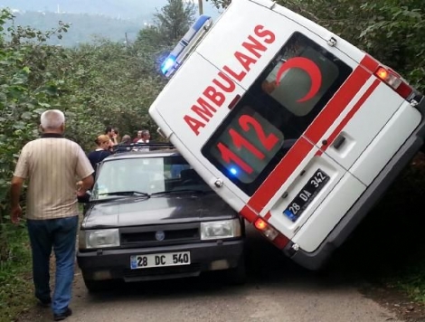 Oğluna kız istemeye giden Gülçin Acar, aniden fenalaştı. 112 Acil Servise haber verilmesinin ardından yola çıkan Levent Kumaş yönetimindeki 28 DA 342 plakalı ambulans, eve yaklaştığı sırada karşı yönden gelen Orhan Şahin’in kullandığı 28 DC 540 plakalı otomobile yol vermek isterken aracın üzerine devrildi.