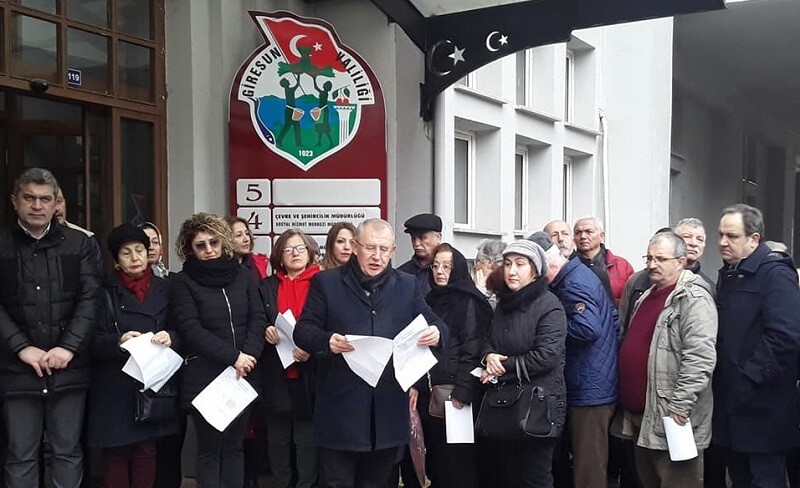 Giresunluların itiraz gerekçelerini CHP Giresun İl Başkanı Fikri Bilge Giresun Çevre Şehircilik İl Müdürlüğü giriş kapısının önünde okudu.