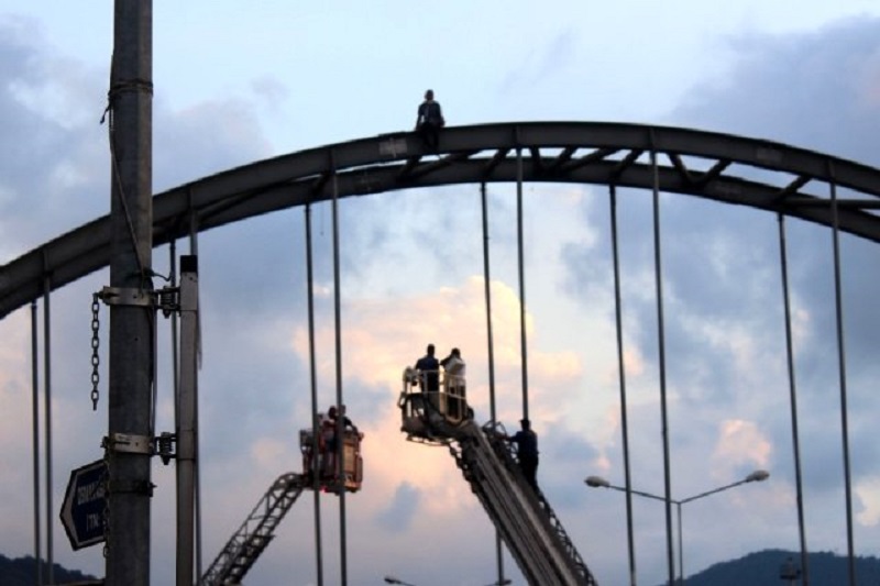 Giresun’da iki hafta arayla Taşbaşı parkı ile şehrin bağlanısını sağlayan üst geçit köprüsünde köprü demirlerine tırmanan ikinci intihar girişimi de intihar etmek isteyen şahsın ikna edilmesi ile sonuçlandı.