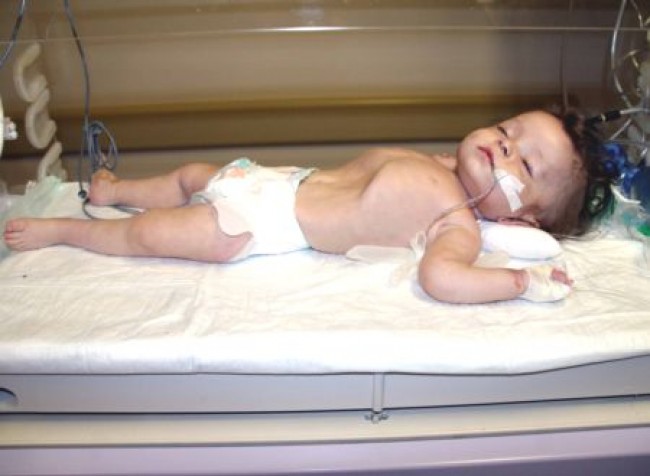 Hastane Başhekimi Op. Dr. Ferhat Günaydın, aile içi şiddete maruz kalmasından dolayı bebeğin solunumunun tüple sağlandığını söyledi.