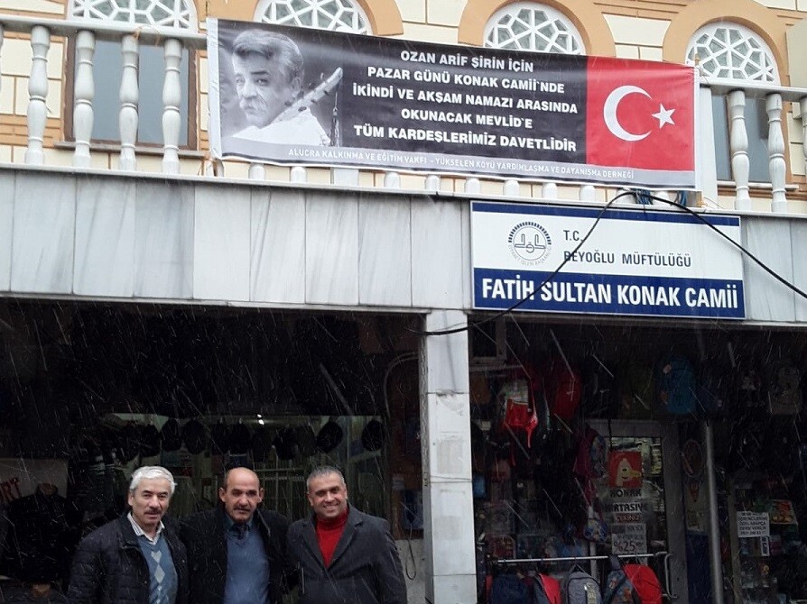 Giresun Alucra ilçesi doğumlu vatandaşlarımız ağırlıklı İstanbul Beyoğlu Okmeydanı Dörtyol Fatih Sultan Konak Camiinde İkinti ve Akşam Namazı arasında Merhum Ozan Arif için Kur’anı Kerim ve Mevlit Tilaveti gerçekleştirildi.