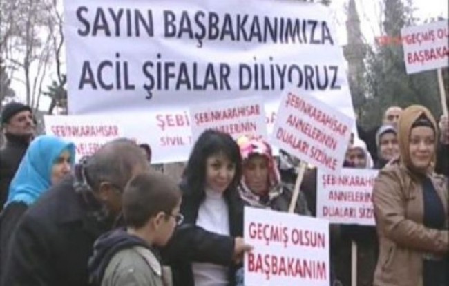 İstanbul’da yaşayan Şebinkarahisarlılar Erdoğan’a geçmiş olsun demek için Üsküdar Kısıklı’ya geldi. Yaklaşık 70 kişilik grup toplanarak ellerindeki ‘ Başbakanımıza Acil Şifalar Diliyoruz ‘ pankartlarıyla Erdoğan’ın evinin bulunduğu sokağın önüne geldi. Aralarında kadın ve çocukların da bulunduğu grup adına Şebinkarahisarlılar Yardımlaşma Derneği Yücel Kısa, ” İstanbul Şebinkarahisarlılar Yardımlaşma Derneği olarak Sayın Başbakanımıza geçmiş olsun dileklerimizi sunmak için burada toplandık. Biz Şebinkarahisarlılar olarak bu konuların çok hassasiyetle üzerinde duruyoruz. Sayın Başbakanımıza tüm Şebinkarahisarlılar olarak geçmiş olsun diyor; Allah’tan şifa diliyoruz. Sayın Başbakanımıza bir çiçek sunmayı da arzu ediyoruz ” dedi.