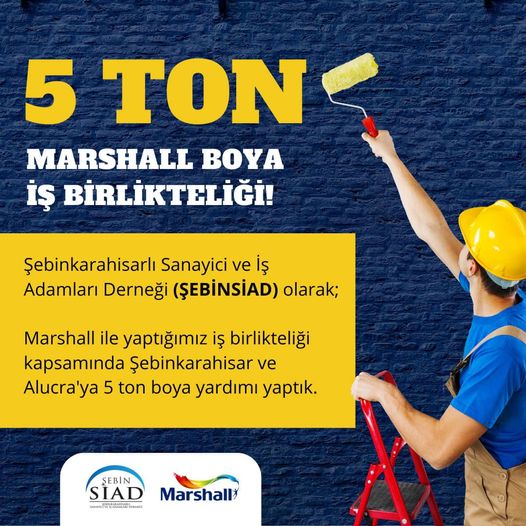 Şebinkarahisarlı Sanayici ve İşadamları Derneği (ŞEBİNSİAD) sponsor firmadan temin ettiği boyalarla önemli kurumların boya ihtiyacını giderdi. Türkiye’nin önemli boya üreticisi firmalarından Marshall Boya katkıları ile oluşan bu yardım için ŞEBİNSİAD Başkanı teşekkürlerini iletti.
