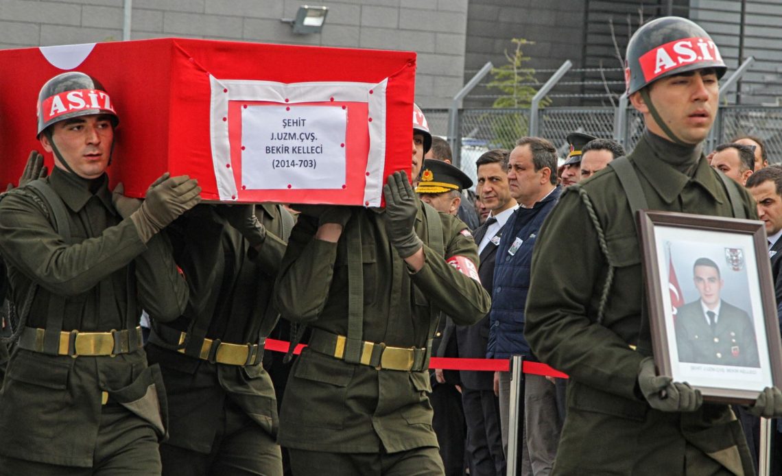 Jandarma Uzman Çavuş Bekir Kelleci’nin naaşı, Ordu-Giresun Havalimanı’ndan karayolu ile memleketi Giresun’un Eynesil ilçesine getirildi. Şehit uzman çavuşun fotoğrafını kardeşi Mehmet Kelleci ile şehit düştüğü olay sırasında birlikte olduğu asker arkadaşı Uzman Çavuş Süleyman Kulgülesin taşıdı. Eski Cami önündeki tören alanına bir süre önce ayağı kırıldığı için koltuk değnekleri ile gelen baba Ali Kelleci ve anne Güner Kelleci güçlükle ayakta durarak taziyeleri kabul etti. “Beni yavrumun yanına getirin. Böyle acı olmaz” diyerek feryat eden acılı anne Güner Kelleci, oğlunun tabutuna sarılarak gözyaşı döktü.