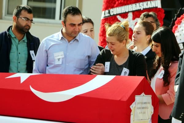 Törende şehit polisin eşi Ayşegül Mimiroğlu, tabuta kapanırken 2 yaşındaki kızı Defne’ye, “Gel kızım babana son bakışımız” diyerek gözyaşları döktü.