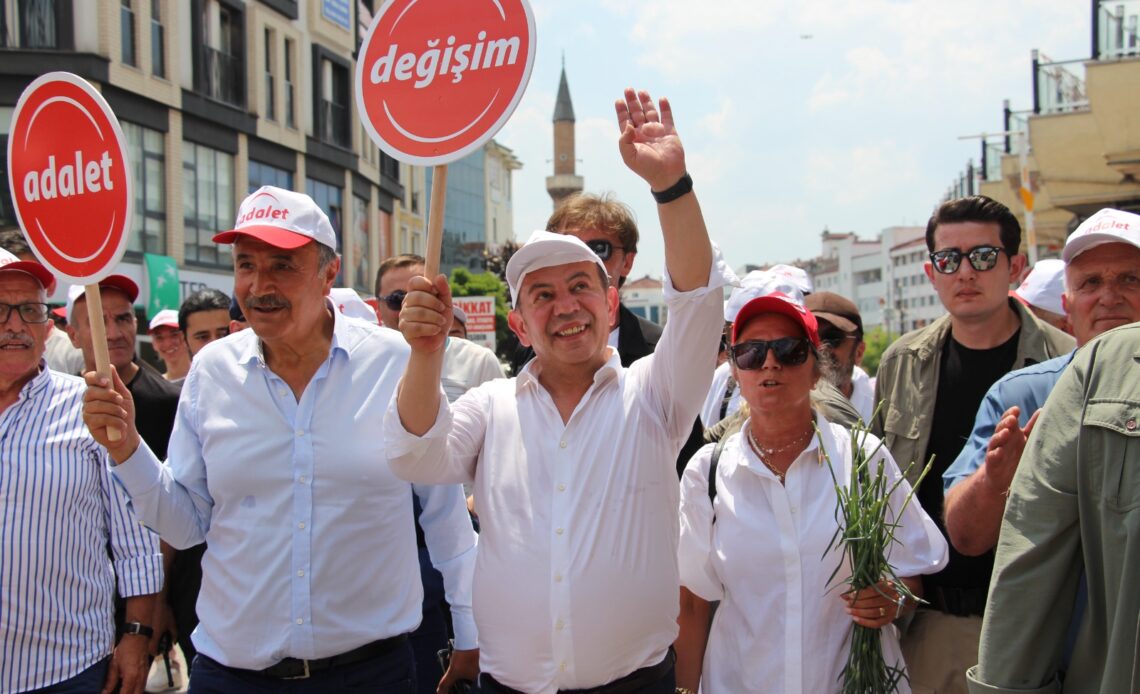Hızır İlyas Yıldırım, (BHA)- Cumhurbaşkanlığı seçimleri sonrası Kemal Kılıçdaroğlu’na değişim çağrısında bulunan ve sosyal medya hesabından yaptığı bu paylaşımlar sonrası CHP’den kesin ihraç istemiyle disipline sevk edilen Bolu Belediye Başkanı Tanju Özcan, geçtiğimiz günlerde duyurduğu “Değişim ve Adalet” yürüyüşünü başlattı. Bolu’dan Ankara’ya kadar yaklaşık 200 kilometrelik yolu 10 günde yürüyerek tamamlamayı hedefleyen Özcan, yürüyüş öncesi Atatürk Anıtı önünde açıklama yaptı. Özcan’ı çok sayıda vatandaş karşıladı. Saygı duruşu ve İstiklal Marşı’nın okunmasının ardından konuşan Özcan, CHP Genel Merkezi’ne yapacağı yürüyüşü Atatürk anıtı önünden başlatmak istediğini söyledi.