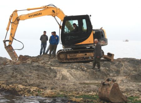 Bir şehir efsanesi olan taşı toprağı Altın sözüne nispet Giresun’un Bulancak ilçesinde deniz kenarındaki kaya parçasında define arama çalışması başlatıldı.