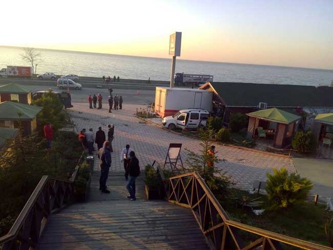 Edinilen bilgilere göre, Tirebolu ilçesi Gölağzı mevkiinde Sait Seyis yönetimindeki 61 K 9458 plakalı kamyon, sürücünün direksiyon hakimiyetini kaybetmesi sonucu iki aracı çarparak yol kenarındaki dinlenme tesisine girdi.