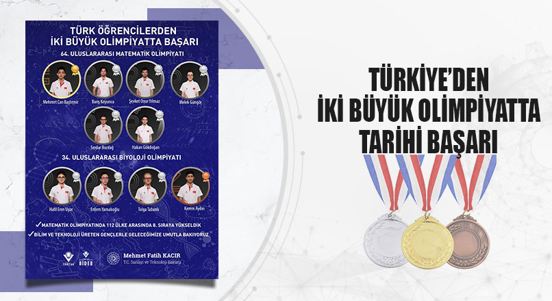 Türk öğrencilerin Uluslararası Matematik Olimpiyatı’nda 1 Altın, 5 Gümüş, Uluslararası Biyoloji Olimpiyatı’ndan ise 3 Gümüş, 1 bronz madalya kazandığını açıklayan Sanayi ve Teknoloji Bakanı Mehmet Fatih Kacır, “Öğrencilerimiz Uluslararası Matematik Olimpiyatında tarihi bir başarıya imza atarak ülkemizi 112 ülke arasında 8. sıraya taşıdı. Böylece matematikte olimpiyat tarihimizdeki en iyi ikinci başarımızı kazandık. 34. Uluslararası Biyoloji Olimpiyatı’nda ise 3 Gümüş, 1 bronz madalya alan öğrencilerimiz göğsümüzü kabarttı” dedi.