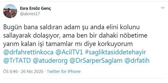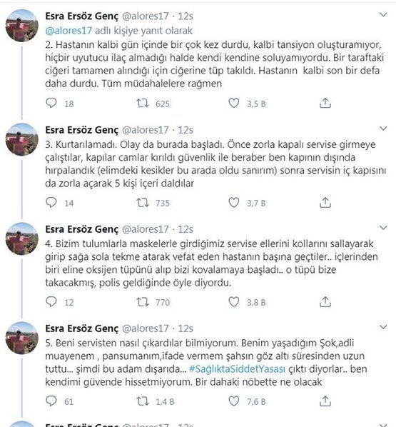 Aslen Giresun’un Tirebolu ilçesinden olan Esra Ersöz Genç isimli nöbetçi doktoru oksijen tüpüyle kovalayan şahısların saldırısı sonrası doktor Esra Ersöz Genç, yaşadıklarını sosyal medya hesabından anlattı.