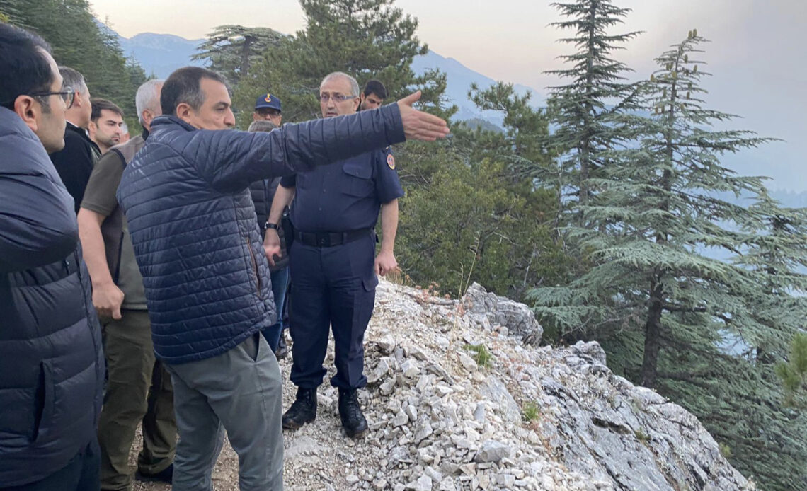 Burdur Valisi Türker Öksüz, Altınyayla İlçesi Ballık Köyü Karanlıkdere Kanyonu’nda çıkan yangın bölgesinde incelemede bulundu.