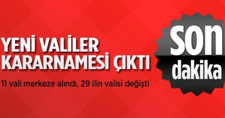 Yeni valiler kararnamesi çıktı. 11 ilin valisi merkeze alındı, 29 ilin valisi değişti.