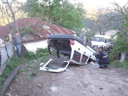 Necati Çayan (65) yönetimindeki 28 YC 976 plakalı otomobil, Oruçbey Mahallesi Çayanlı mevkisinde sürücüsünün direksiyon hakimiyetini kaybetmesi sonucu yol kenarındaki tümseğe çarptı. Çarpmanın etkisiyle savrulan otomobil, takla attı.